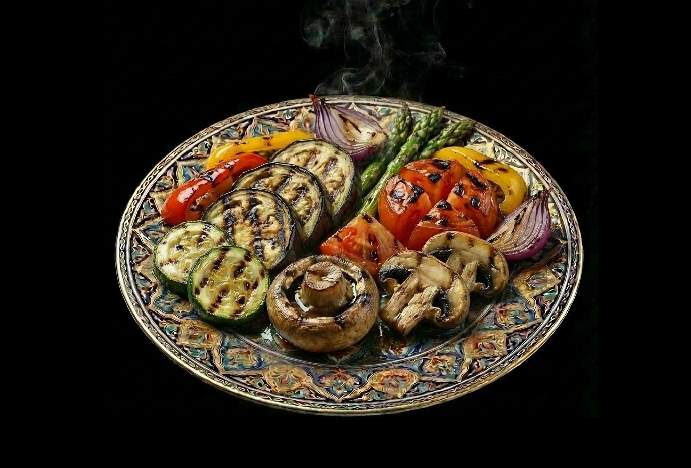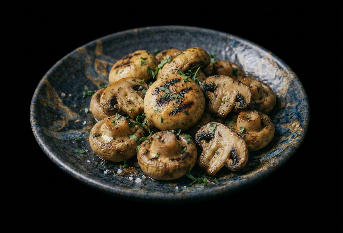 Шампиньоны, запеченные на углях. Снаружи — аппетитный гриль-рисунок, внутри — нежная мякоть и аромат живого огня. Доступно к заказу!